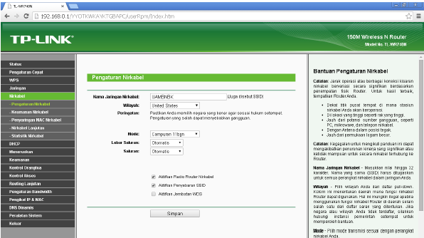 3. Mengganti SSID Pada Menu Wireless (Nirkabel) sesuaikan Nama sesuai kebutuhan